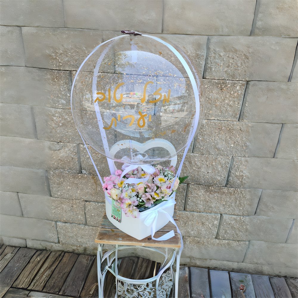 משולבת בלון שקוף עם הקדשה עד 3 מילים, מותאמת לאירוע.
